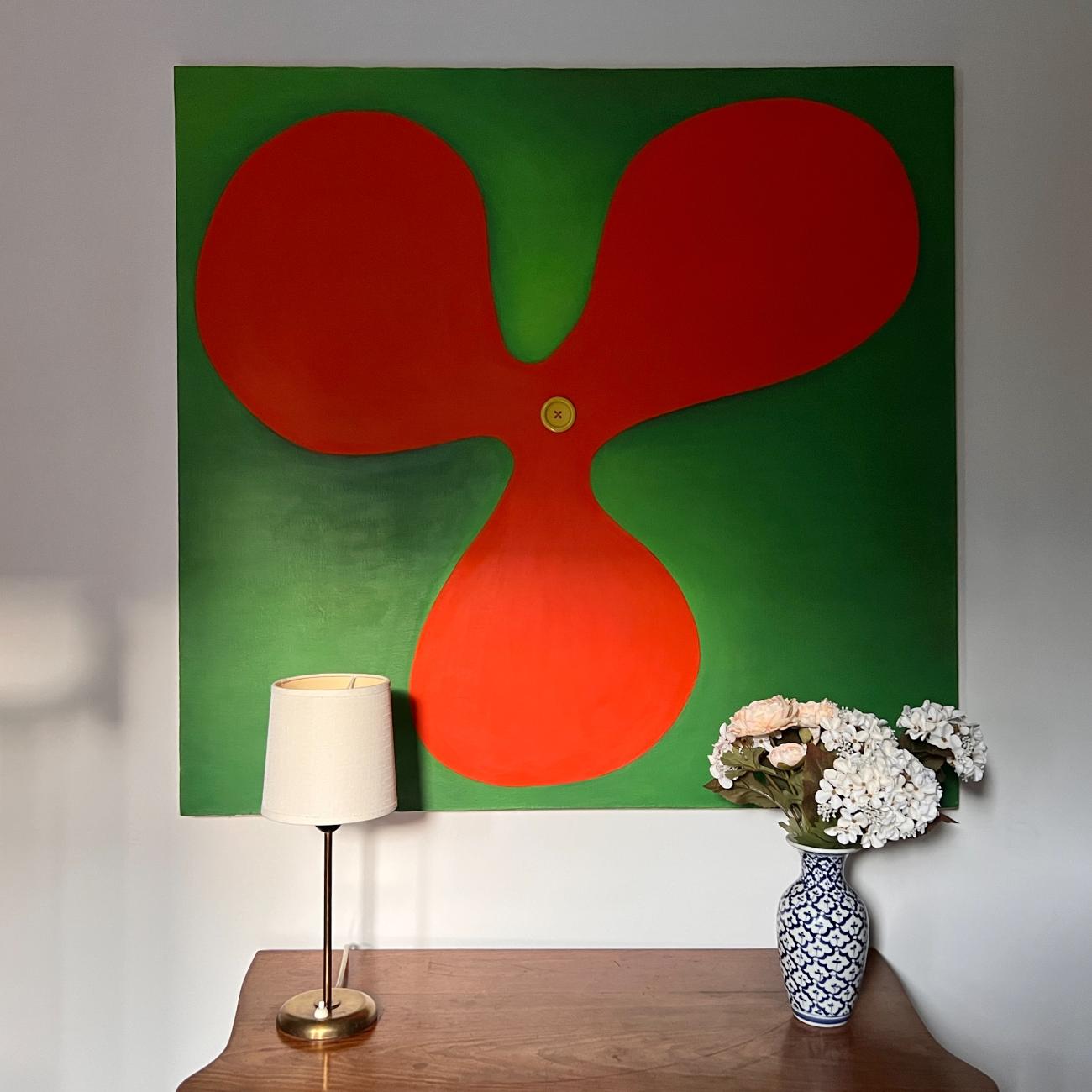 In this series of four paintings I am playing with perception, using colors to create movement. The flower can be seen both in front of and behind the background. The image to the left is from Dietz Space in Manhattan in 2009.