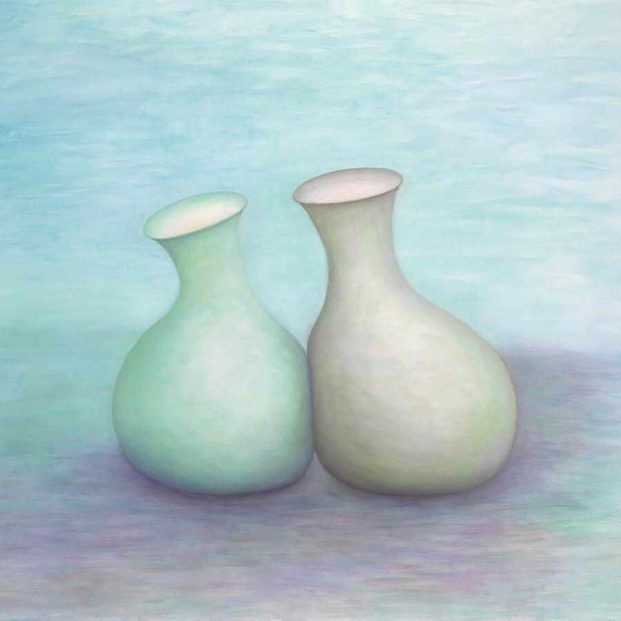 VasesTwo vases related to one another in different ways creating varying atmosphere.Cerise Vases, Green Vases, Yellow Vases and Blue Vases Vinyl on Linen142 x 150 cm, 2007